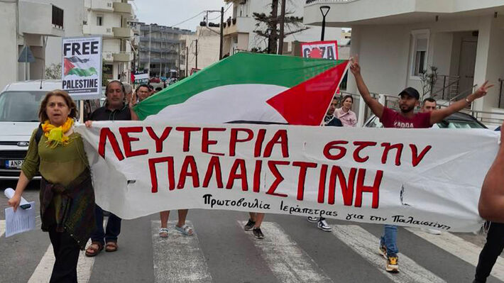 Συγκέντρωση αλληλεγγύης του Παλαιστινιακού λαού και καταδίκης του κράτους δολοφόνου του Ισραήλ και των συμμάχων του, πραγματοποιήθηκε το απόγευμα της Παρασκευής στην κεντρική πλατεία της Ιεράπετρας, με την συμμετοχή της Επιτροπής Ειρήνης Λασιθίου, εργατικών σωματείων και φορέων του Λασιθίου.