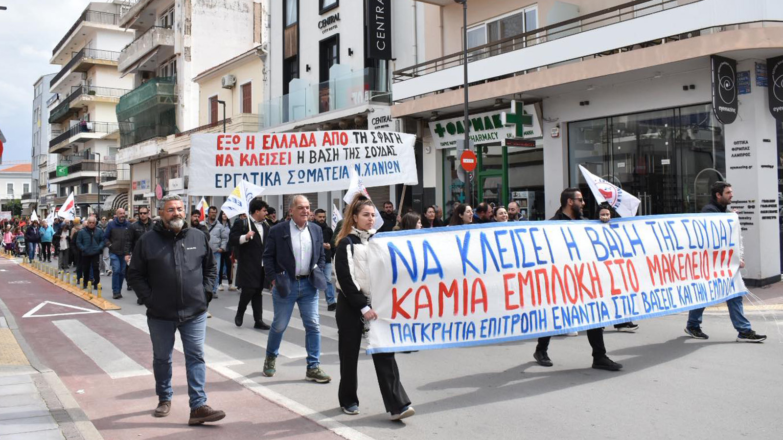 Τα Εργατικά Σωματεία στην Κρήτη και η Παγκρήτρια Επιτροπή Ενάντια στις Βάσεις και την Εμπλοκή οργάνωσαν μαχητικά συλλαλητήρια σε όλο το νησί στέλνοντας το μήνυμα ότι ο λαός της Κρήτης δεν θα δεχθεί το νησί να γίνει πολεμικό ορμητήριο.
