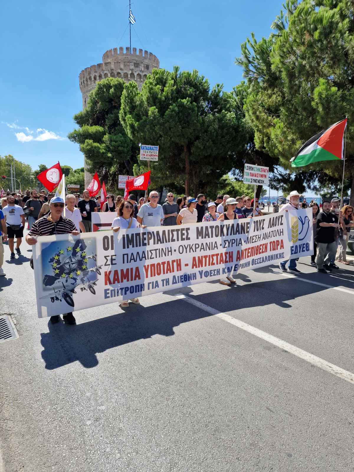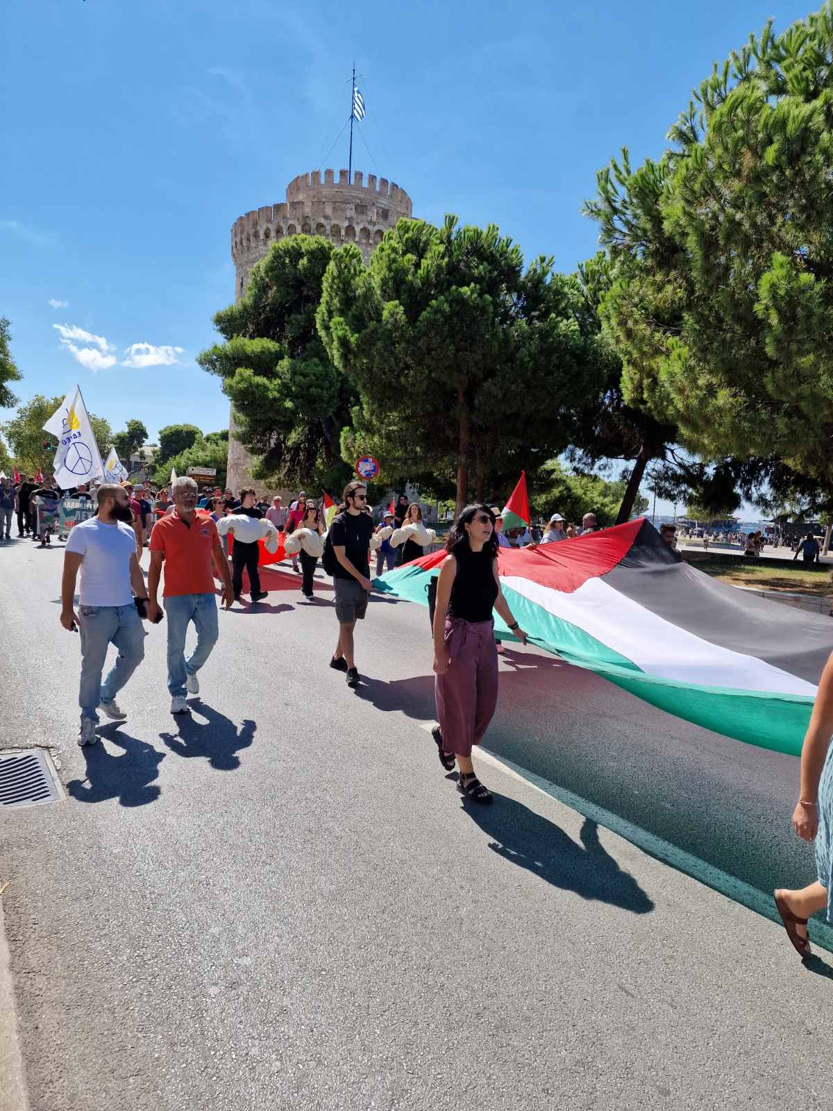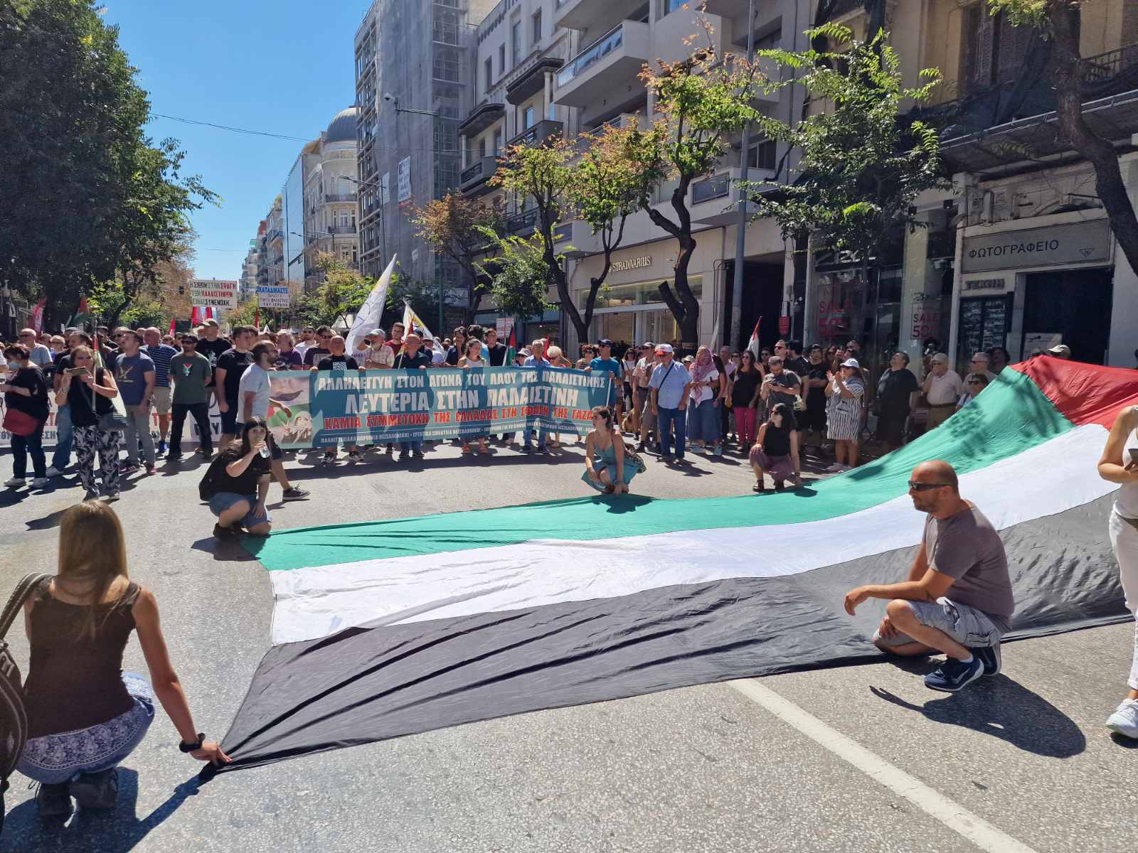 Την αλληλεγγύη τους στον ηρωικό παλαιστινιακό λαό ενάντια στον όλεθρο που σπέρνει το κράτος δολοφόνος του Ισραήλ με τη στήριξη των συμμάχων του ΗΠΑ, ΝΑΤΟ, ΕΕ εξέφρασαν Σωματεία και φορείς της Θεσσαλονίκης με την μεγάλη τους κινητοποίηση στους δρόμους της πόλης