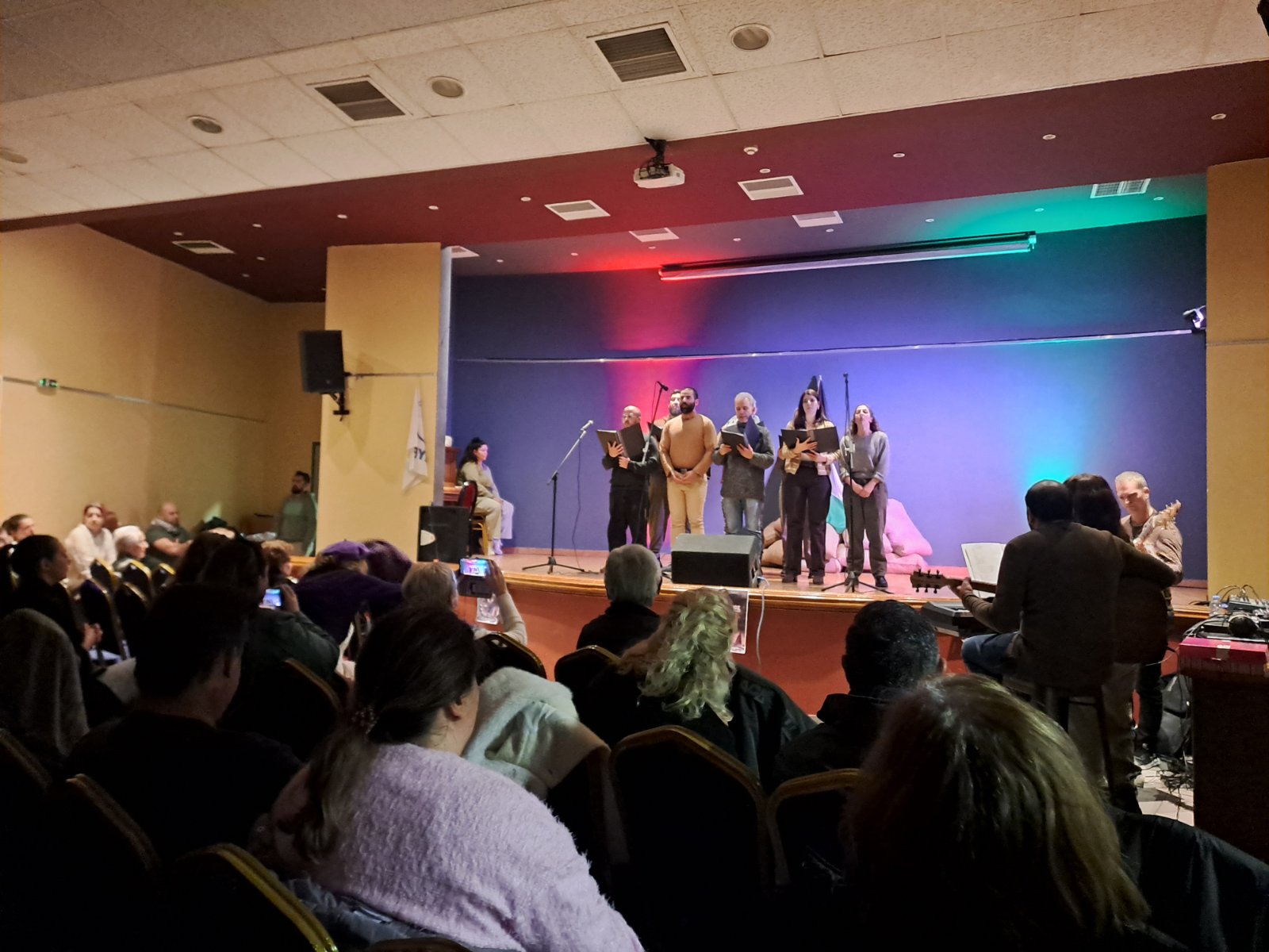 Μετά την ομιλία της επιτροπής για την κρισιμότητα της κατάστασης, με τα σύννεφα του πολέμου να πυκνώνουν γύρω μας, την ολοένα και βαθύτερη εμπλοκή της χώρας μας στα πολεμικά σχέδια και την πολεμική οικονομία, ναψ φέρνουν βαριές συνέπειες στην καθημερινή επιβίωση όλων μας, ακολούθησε ένα πολύ συγκινητικό αφιέρωμα στον ηρωικό αγώνα του Παλαιστινιακού λαού, με δραματοποιημένη ποίηση και αντιστασιακό τραγούδι από την ομάδα του στεκιού εργαζόμενων και νεολαίας Καίτη Πανοπούλου, την οποία ευχαριστούμε θερμά.