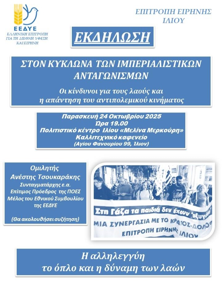 Η Επιτροπή Ειρήνης Ιλίου καλεί σε εκδήλωση με θέμα: