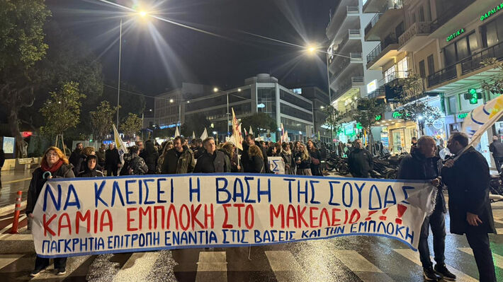 Εκατοντάδες εργαζόμενοι, αυτοαπασχολούμενοι, αγρότες, φοιτητές και μαθητές διαδήλωσαν σε Ηράκλειο, Χανιά και Ρέθυμνο ενάντια στην ολοένα και πιο βαθιά πολεμική εμπλοκή της χώρας
