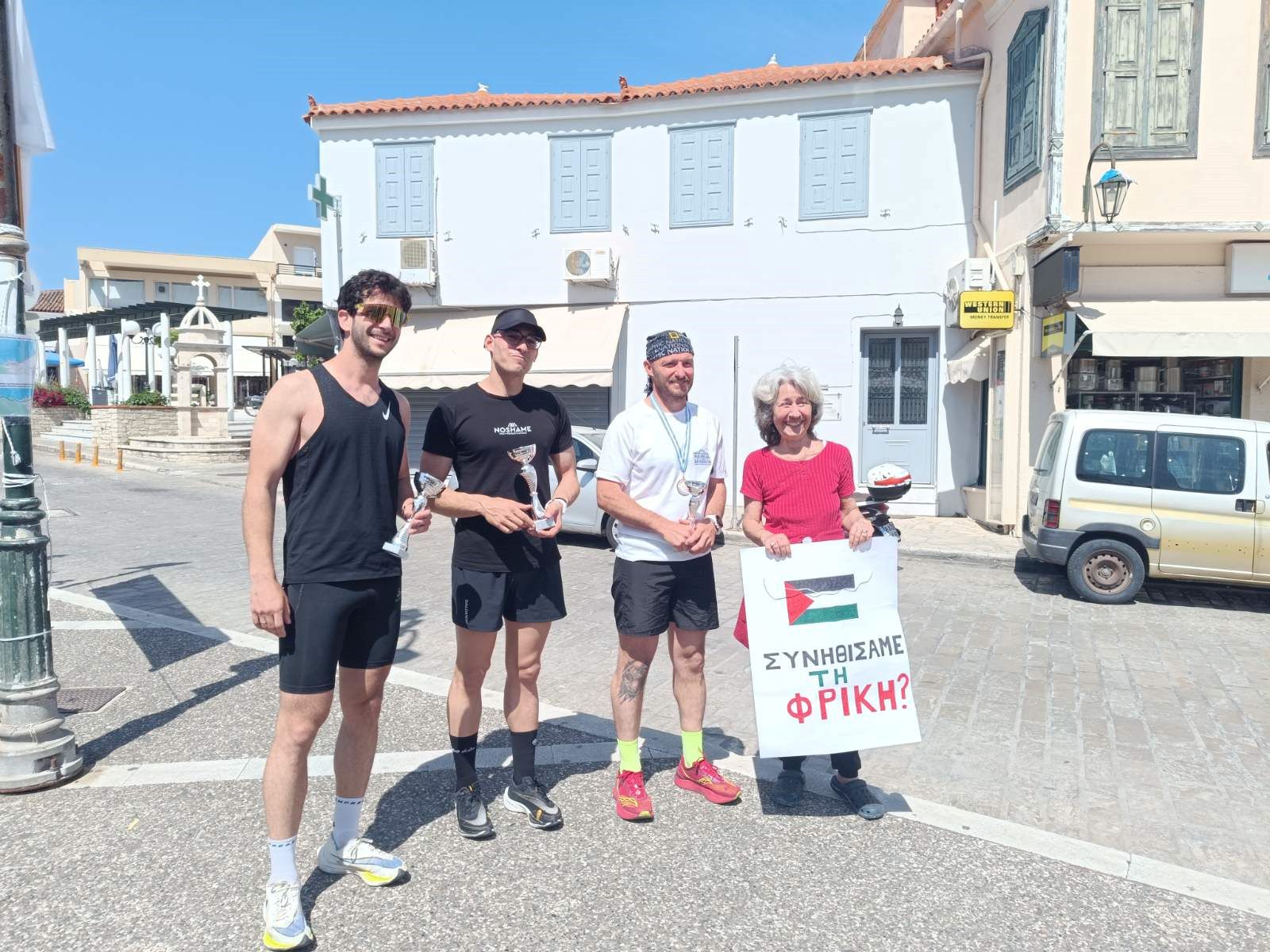 Τόσο στην εκκίνηση όσο και μετά τον τερματισμό χαιρετισμό σε αθλητές και θεατές απηύθυνε ο Τίμος Χατζηλαγός αντιπρόεδρος της Πανσαμιακής Επιτροπής Ειρήνης.