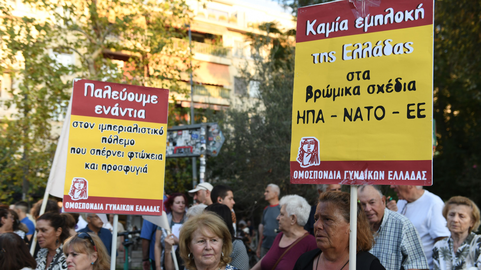 Φθάνοντας στο Σύνταγμα οι διαδηλωτές φώναζαν δυνατά «Έξω το ΝΑΤΟ να φύγουμε οι βάσεις καμία συμμετοχή στις επεμβάσεις».